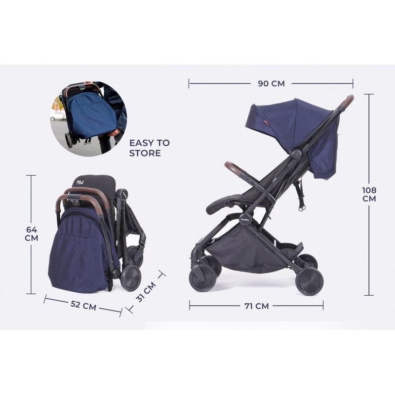 - Poussette ouverte : 105 x 51.5 x 72 cm