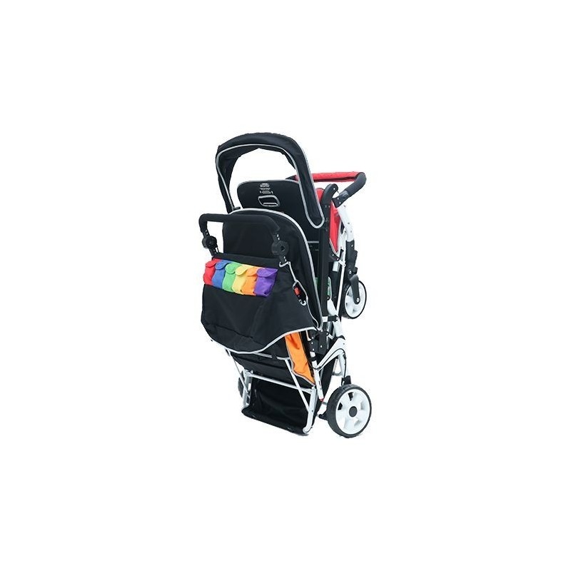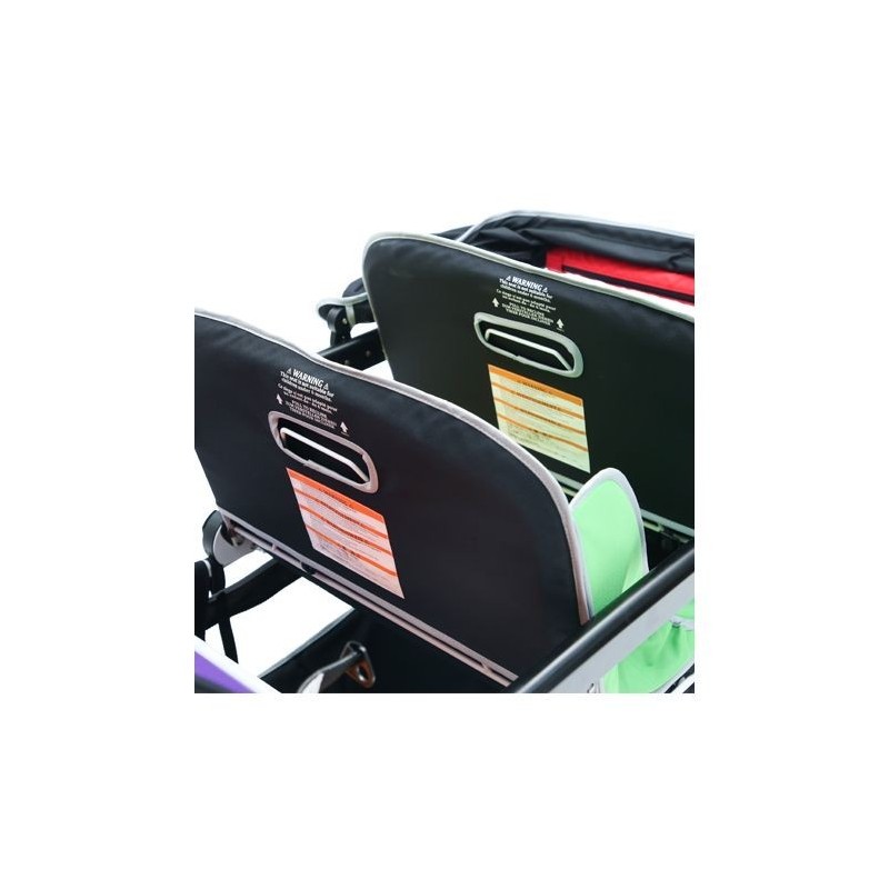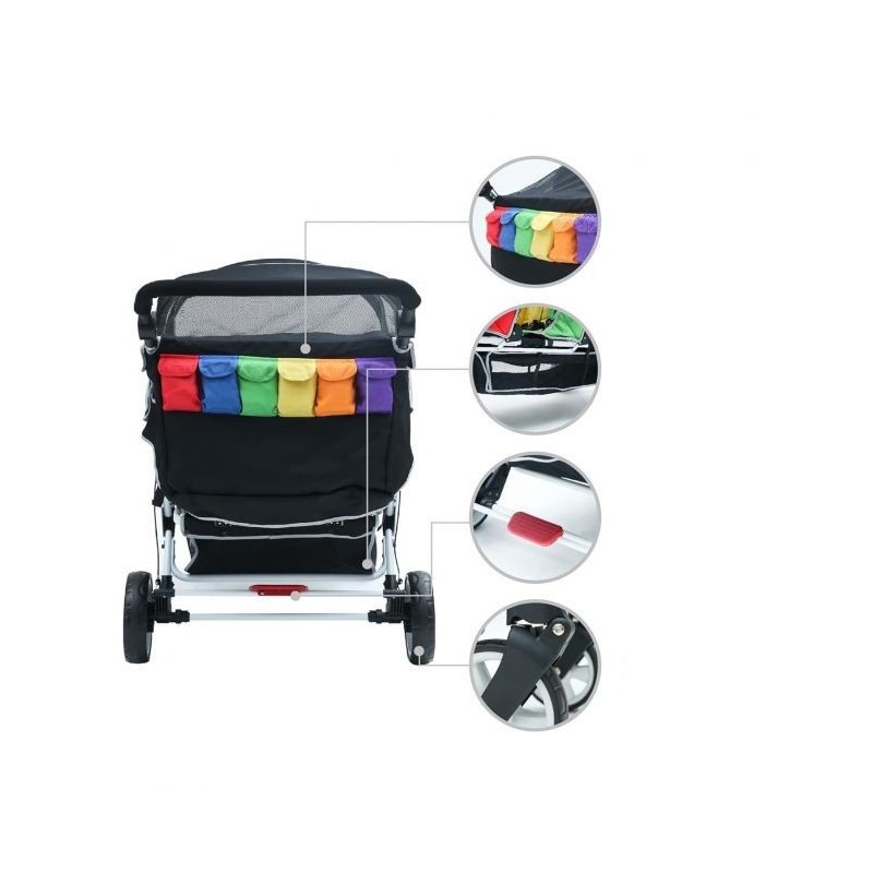 Equipée de banquettes inclinables molletonnés, déhoussables et de grandes roues tout terrain, elle ne dépasse pas 79.5 cm de large, pour vous suivre dans toutes vos sorties. Très maniable, ses sièges sont adaptés aux enfants dès la naissance et jusqu'à 15 kg.