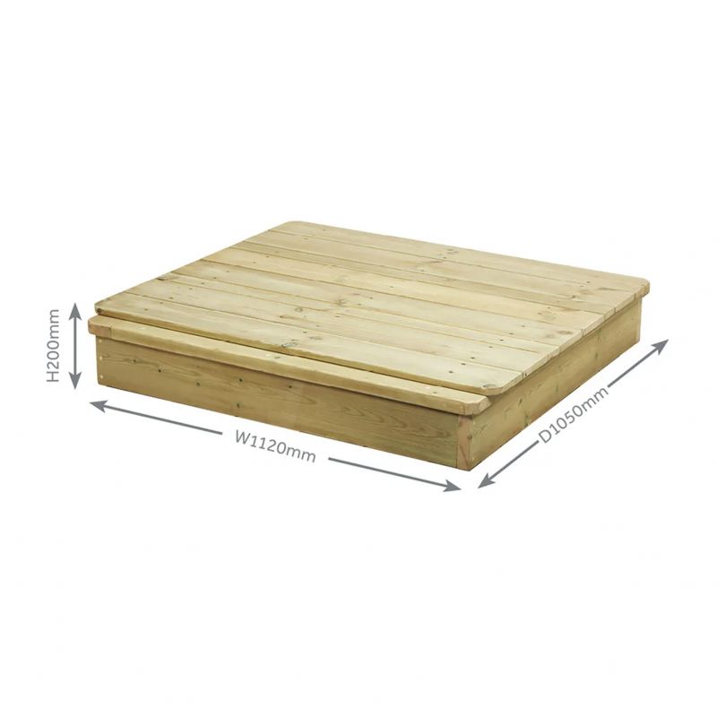 Bac à sable avec couvercle. Le bac à sable est livré avec un couvercle en bois qui offre une couverture complète pour assurer la protection du contenu.