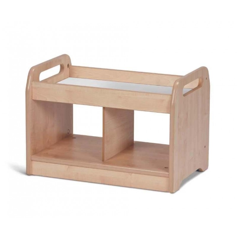 Rangement 2 compartiments avec miroir (H430 mm). Rangement compacte et facile d'accès avec surface de jeu en miroir, spécialement conçue pour les environnements d'apprentissage plus petits.
