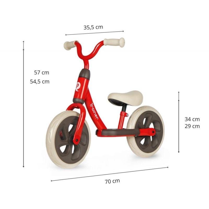 la draisienne Trainer de Qplay est conçue pour les enfants de 24 mois et plus. Elle est idéale pour les enfants qui souhaitent apprendre l'équilibre et gagner en confiance sur deux roues. Elle garantie une ergonomie optimale et une utilisation aisée pour les jeunes aventuriers.