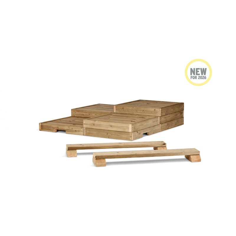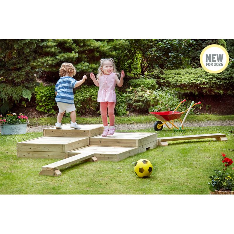 Explorez des possibilités infinies avec la gamme de podiums extérieurs Millhouse. Conçus pour stimuler le mouvement, la créativité et la confiance, les ensembles de podiums offrent des solutions flexibles pour le développement physique et le jeu collaboratif. Ces podiums robustes s’adaptent pour créer de véritables aventures d’apprentissage. Il suffit de les assembler et de les reconfigurer selon vos besoins pour offrir des opportunités de jeu libre infinies.