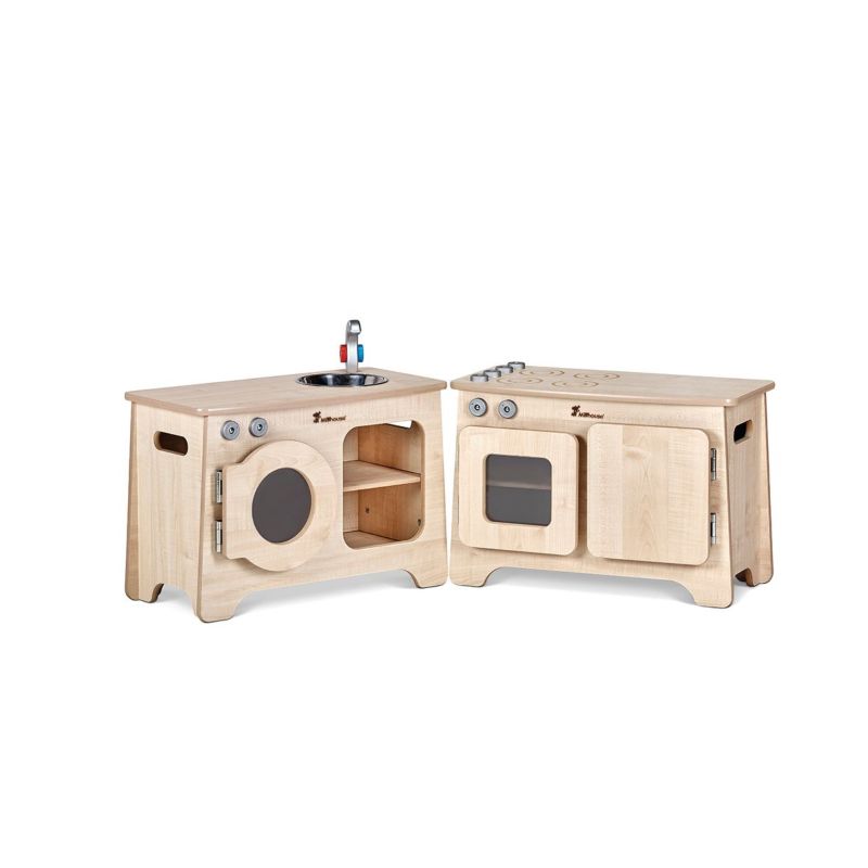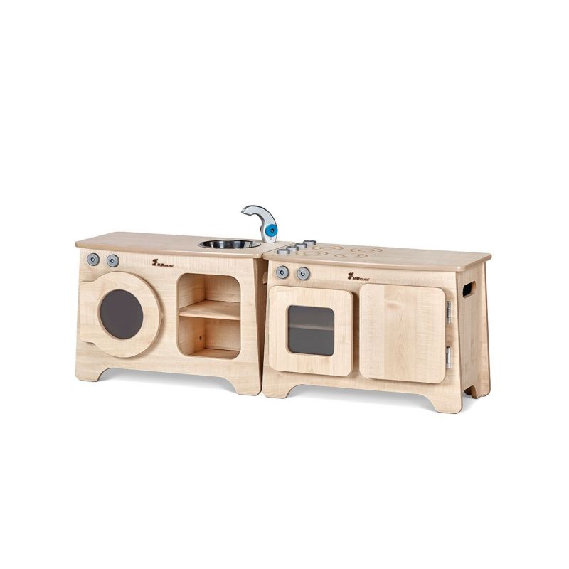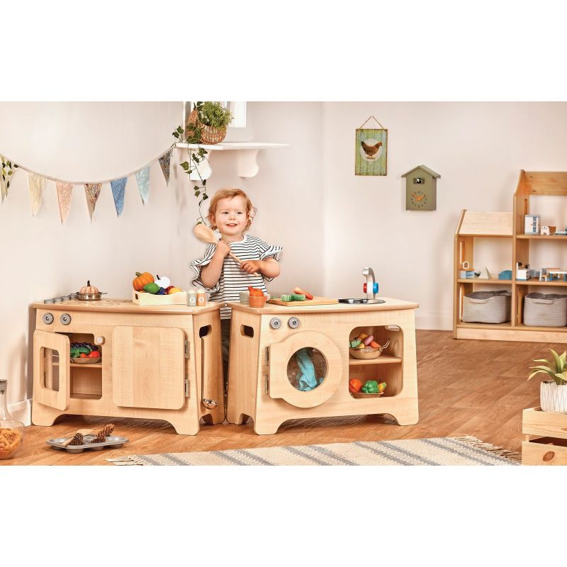 Dotés de détails réalistes tels que des boutons rotatifs, un robinet et un évier, des étagères de rangement pratiques et des charnières anti-pincement pour plus de sécurité, ces modules attrayants invitent les enfants à explorer les gestes du quotidien à travers un jeu créatif et imaginatif.